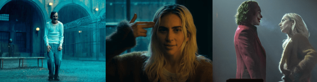Two years after killing Murray Franklin (Robert De Niro) on live television, Arthur Fleck/Joker (Phoenix) is incarcerated at Arkham State Hospital, experiencing musical madness through a shared delusion with Joker fan Harleen “Lee” Quinzel (Gaga).