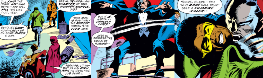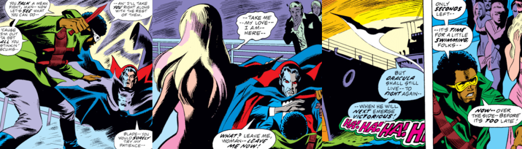After being exposed and vilified by a vampire ruse, half-human, half-vampire vampire hunter Blade (Snipes) reluctantly teams with the upstart “Nightstalkers” against the resurrected Count Dracula/Drake (Purcell).