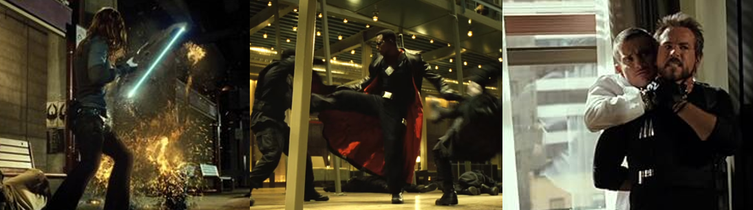 Sommerfield leaves a message asking Abby to take care of Zoe and discussing the Daystar prototype, though warns that it must be injected into Drake to work and could potentially kill Blade alongside the other vampires. Regardless, Blade and Abby take the virus (helpfully forged to be fired as an arrow) and follow Hannibal’s tracker, spreading silver dust through the facility’s air conditioning to weaken the vampires ahead of a full-frontal assault. While Blade and Abby fend off Danica’s disposable goons with their karate and toys to rescue Zoe, Hannibal struggles against the hulking Jarko while Blade gets into a swordfight with Drake, now garbed in ceremonial armour. For all the shit I’ve talked about this Dracula, this sword fight is actually really cool (despite some dodgy CGI sequences where Drake defies gravity) and nicely spliced alongside Hannibal and Jarko’s more brutal smackdown, which ends with an exhausted and overwhelmed Hannibal stuffing an explosive ultraviolet round into Jarko’s mouth and blowing him inside out. Although relishing matching swords with Blade, Drake assumes his demonic form to overpower Blade, leaving him prone for a bloody end. While Drake has the wherewithal to catch Abby’s arrow, a second shot stuns him long enough for Blade to inject the Daystar virus, which immediately reacts with Dracula’s blood to reduce all remaining vampires in the building (including Danica) to choking, rotting corpses. In his final moments, Drake commends Blade and praises him as the future of his species, using the last of his power to mimic Blade’s form to spare him future persecution. Though the wounded dhampir’s recovered by his allies, Hannibal’s final narration delivers an anticlimactic and open-ended coda that sees Blade continuing his war, suggesting that Daystar will take some time to eradicate the vampire threat.