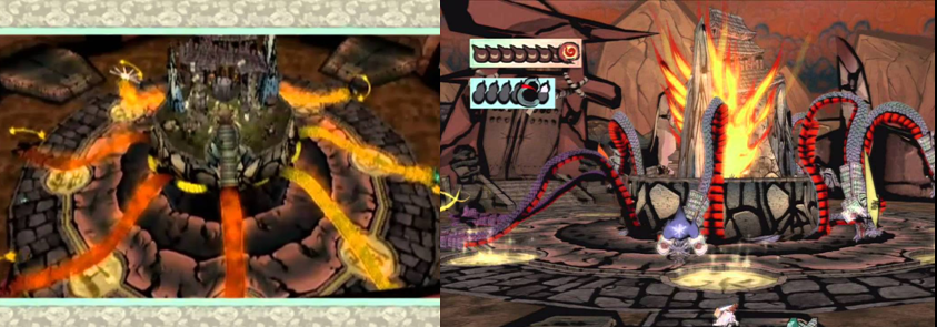 Although Drokmar’s tower boasts fifty floors, there are only eight bosses to face and you’ll battle two of them three times each, just with slightly different palette swaps and attack patterns. The first of these is Quimyra, a Chimera-like creature sporting three heads (a dragon, a lion, and a ram), wings, and hooves. While the Skull and Queen variants (who are referred to as Chimeras) are surrounded by skulls, the first one isn’t, and the battle goes pretty much the same for all three save for the arena differences (with spike pits and other enemies and hazards occurring in later bouts) and the Chimeras being capable of spitting fireballs in addition to relentlessly pouncing at you. You’ll also face three different dragons: the first, the Gold Dragon, swoops about an elaborate throne room shooting lightning while you’ll have to battle the Emerald variant without the aid of platforms and a weaker version even appears mid-way through one floor of the tower. The final dragon is actually a blue, two-headed hydra; it attacks in very much the same way, though in an ominous cathedral and with added speed and a swirling fire attack. Aside from these reskins, you’ll also have to contend with two Celestial Serpents; these monstrous, skeletal worms snake out from an asteroid in the background and can be tricky to dodge as they’re so big, but they share the same health bar and have no projectile attacks so they’re technically the game’s easiest bosses. Finally, at the end of the game, you’ll face the demonic Lord Drokmar himself; this vile demon floats around the swirling arena blasting lightning bolts from orbs and his hands to create walls of flames. His attacks only increase as you do damage, with him adding wheels of flame to his attacks, but once you defeat him he’ll offer you the chance to take his place as the King of Evil or bring peace to the land by destroying his magical Dark Orb. What you choose to do is entirely up to you…