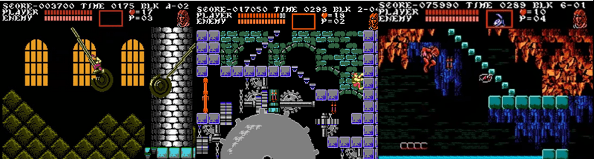 Though there are some interesting level designs outside of the first level (the second level being set in the clouds and the airship are quite interesting), a lot of the backgrounds are criminally plain and uninteresting at times which you would think would allow Kid Dracula to run quite smoothly but you would be wrong. Instead, Kid Dracula suffers from the worst slowdown and sprite flickering in the Castlevania Anniversary Collection so far…and I’m struggling to see why. It’s not as if the game is overly complicated or full of that many moving elements but you’ll stutter and jitter about during critical moments, slipping to your doom or making fatal errors when fighting the game’s various bosses because the game slows to a crawl and the sprites start bugging out on you. Thankfully, the game has a whimsical soundtrack and loud, cartoony sound effects, all of which add to Kid Dracula’s quirky nature, but none of which can help reduce the frustration the slowdown and sprite flickering brings to the title.