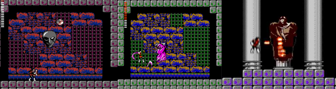 Eventually, you’ll go one-on-one with Galamoth himself not once but twice; the first time, you battle “Demon Lord Galamoth” at the end of level seven and he attacks with both a sword (easily jumped over) and a stream of fire (easily ducked). The second time, you battle “King Galamoth” at the end of level nine but, despite being the game’s final boss, he’s not much of a threat. He’s completely immune to all damage except in the small window where he opens his mouth to drop a fireball on your head; just stay between the lighting bolts he shoots down and keep as far left (or right) as you can and be sure to fire a charged (or Bomb) shot upwards before you miss your window and you’ll be back as the King of all Demons in no time.