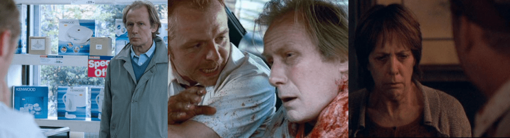 As great as all of this gore is, a central aspect of the film, and Shaun’s character, is his strained relationship with his stepdad, Philip (Nighy), a stern and harsh patriarchal figure who Shaun resents for his condescending and disapproving attitude. Philip is the very embodiment of an overbearing authority figure and has long been a thorn in Shaun’s side as nothing he ever does, or has done, has ever been good enough for his would-be father figure. This is the exact opposite of his loving relationship with his mother, an eccentric and doting woman who just wants everyone to get along and doesn’t want to cause a fuss. This ranges from little things like being more concerned about making sandwiches for Shaun when he comes to rescue her, to hiding the bite she received from the others so as not to worry her beloved son. Having suffered two pretty horrific bites during their escape, Philip ultimately succumbs to his wounds and dies but, before turning, finally buries the hatchet with his step-son in a truly emotional scene. Philip admits that he also saw great potential in Shaun and did the best he could to push him to achieve that, but struggled as Shaun was already a pre-teen when they first met but, with his father-figure dying in his arms, Shaun finally puts his issues with his stepdad to rest. However, he’s absolutely heartbroken to find that his mum has also been bitten and leaps to her defence when David moves to execute her before she can turn. This causes the tensions between the two, and the entire group, to finally boil over and not only makes a traumatic moment even worse for Shaun but spells disaster for their makeshift fortification.