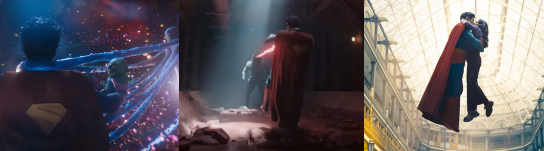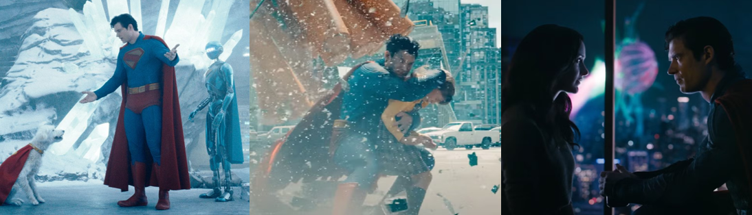 It’s clear that James Gunn is influenced by many different sources for this film. Obviously, the classic Richard Donner films are the most prominent, with composers John Murphy and David Fleming sampling the iconic John Williams theme and giving it a glam-rock edge and the opening and closing titles mirroring Donner’s films. The design of the Fortress of Solitude is also ripped directly from Donner, though Gunn populates it with distinctly “Silver Age” Kryptonian automatons who tend to Superman’s needs. The entire film pops with colour and exciting action, just like a comic book, and Superman is purposely given a corny edge to make him a loveable throwback to a simpler time. Superman also takes place in a world where metahumans, Gods, and monsters have become an accepted part of everyday life. Therefore, while civilians still flee for their lives when the Hammer of Boravia and a fire-breathing kaiju attack, it’s treated as another day in Metropolis, with even Superman and Lois barely acknowledging an interdimensional imp threatening the city during their reconciliation. Superman goes one step further with this, introducing pocket dimensions, establishing the Hall of Justice as the Justice Gang’s headquarters, and hinting at a larger universe beyond our world through a Green Lantern and certain dialogue. Everything feels very “lived in”, like we’ve jumped into the third film in a franchise, without being overwhelming or difficult to follow as the focus is on the characters, their interactions and relationships, and their different dynamics. The world is in awe of Superman but turns on him immediately once Luthor broadcasts his message, with even his allies questioning his true purpose, and this twist is used to push Clark away from being beholden to his lost and unknown people and back towards his true heritage: namely, his Earth parents and their lessons.