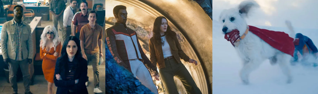 Stars: David Corenswet, Rachel Brosnahan, Nicholas Hoult, Edi Gathegi, Nathan Fillion, and Gabriela de Faría