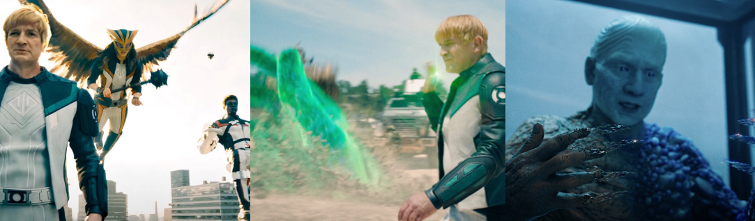 Although the Justice Gang are clearly the tools of corporate mogul Maxwell “Max” Lord (Sean Gunn), garbed in uncomfortable matching outfits and showing up to avert any crisis and get some much-needed publicity, they are extremely competent superheroes in their own right. While we don’t get any meaningful backstory on any of them, especially the alluring and deliciously battle hungry Hawkgirl, beyond some snarky comments from Guy about how he was chosen to be a Green Lantern, the team is well established and close enough to Superman to know his true identity. Although Mr. Terrific takes centre stage, I enjoyed the abrasive and egotistical Guy Gardner the most and was very pleased to finally see a Green Lantern on the big screen again. Guy is rude, belligerent, and full of himself, believing himself the leader of the Justice Gang and stepping up to anyone who questions his motives, authority, or even the group’s name. Guy is the most vocal of the group in turning on Superman, immediately condemning him as an alien threat, while Hawkgirl is more dismissive and Mr. Terrific is more concerned with the facts. Shown to be a somewhat stoic but unrivalled genius, Mr. Terrific utilises various tech, most notably his T-Spheres, to analyse a threat and determine the best, most efficient course of action, lethal or otherwise. While Superman bemoans their recklessness, the Justice Gang disregard his complaints as they don’t hold themselves accountable for property damage or loss of life, painting them as very rough around the edges. Mr. Terrific is both impressed and horrified to learn the Luthor has harnessed a black hole to create dimensional portals all over the world and kit out a hazardous pocket dimension as his own prison, where the egomaniac throws any dissenters and forces monkeys to slander Superman online. Metamorpho is kept under heel there to save his baby son and forced to transmute his body into Kryptonite to torture Superman. While he initially demands that Superman not try to talk or reason with him, Metamorpho has a change of heart after witnessing how cruel Luthor is and restores Superman to full health, assisting him in fending off Luthor’s goons and even joining the Justice Gang to curb the invasion of Jarhanpur.