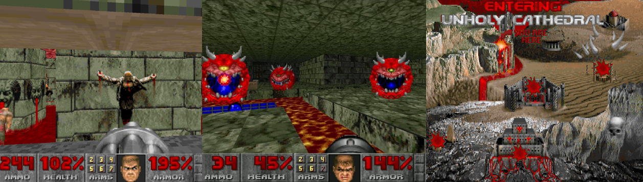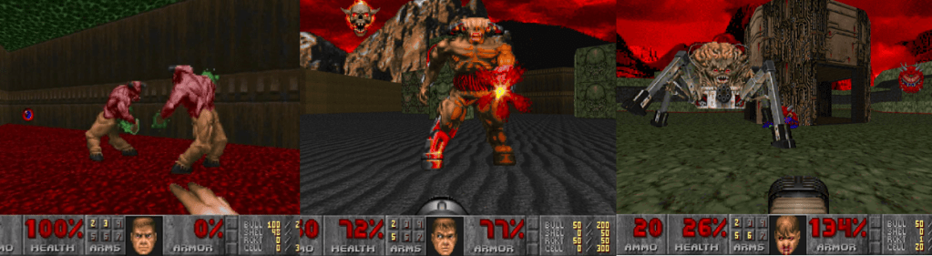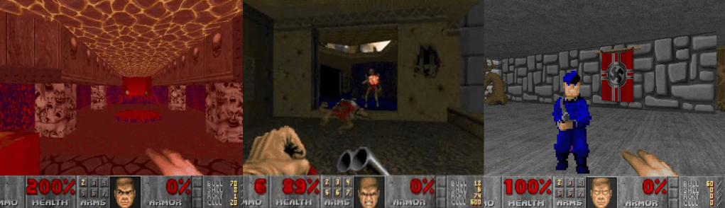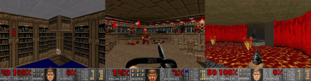 First-person shooters (FPS) existed before Doom (ibid, 1993), but that celebrated title popularised the genre with its online “Deathmatches” and multiple ports. Although sparking much controversy, Doom was incredibly successful and this translated into a bigger, equally successful Doom II (ibid, 1994). It then took ten years for id Software to release Doom 3 (ibid, 2004), a more story-focused title that was celebrated for its claustrophobic atmosphere and gory combat. Following this, id Software tried to launch a new FPS series with Rage (2011) and outsource a fourth Doom as they had with their Wolfenstein franchise (Various, 1981 to 2019), a difficult proposition that Bethesda Softworks revised after purchasing id Software. Originally set on Earth as a spin on Doom II, Doom 4 struggled to build momentum and was eventually retooled into a series reboot. Now simply titled Doom, the game sought to emphasise fast-paced combat rather than story, taking inspiration from the bloody action/horror movies of the 1980s and rewarding bloodthirsty players. Lauded as one of the best games of 2016, Doom received top scores from critics, who praised the gory visuals, heavy metal soundtrack, and action-orientated gameplay. Doom was further bolstered by three packs of downloadable content (DLC) that added extra content to the uncharacteristically divisive multiplayer mode, all of which was later bundled alongside the first three games in one handy collection. Having successfully revitalised the franchise, Doom was followed by an even bigger, widely praised sequel in 2020 and a fantasy-orientated prequel in 2025.
