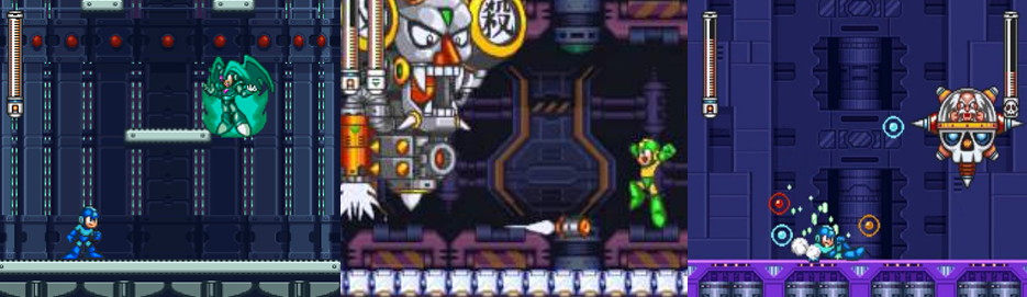 Mega Man’s new rival, Bass, is fought three times. The first fight is a sparring session where he jumps about firing regular shots, but he adds charged shots in the second bout and joins with Treble for the third. In this fight, he flies about, jets towards you, fires a homing punch, and is a much tricker target to hit. Dr. Wily gives Guts Man an upgrade in his fortress, forcing you to pepper him with shots and trick him into dropping giant stones for you to hit at him with the Slash Claw. You must keep him at bay with your shots to avoid his pincers tossing you into the ceiling, and work fast to avoid being crushed. The giant, turtle-like Gamerizer guards Dr. Wily’s second stage and is best damaged with the Wind Coil. You must time your shots to hit his head and avoid being immolated, slide under his rocket charge, and fend off his minions when he flies off-screen. While this was a pain, it was nothing compared to the HannyaNED2, which chases you across a platform, fires a piercing laser, spits bombs, and shoots high and low missiles. Its only weak spot are its eyes, which are extremely difficult to hit with Noise Crush, to say nothing of its massive hit box! Things take a turn for the ridiculous in Dr. Wily’s final stage, where you must defeat all eight Robot Masters and endure a two-stage battle against his latest mech with no checkpoints in between! You must slide under the Wily Machine 7 to avoid being crushed and attack its smaller doubles to clear the ground, though landing shots on Dr. Wily’s cockpit is easier said than done as the hit box is very small and your attacks do minimal damage. Dr. Wily’s last-ditch attack comes in his latest capsule, which teleports in and out and fires homing orbs that damage, stun, freeze, or immolate you. He also shoots a lightning bolt that travels across the ground and is often out of reach of most Special Weapons, making for a ridiculous tough final boss that broke me.