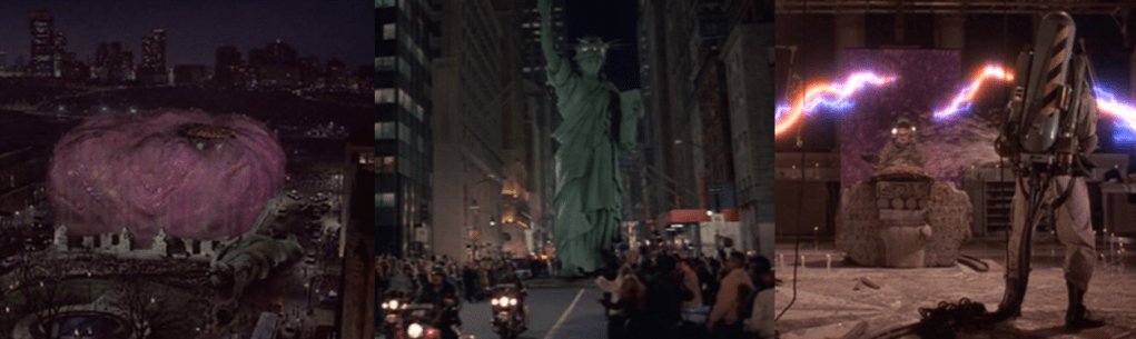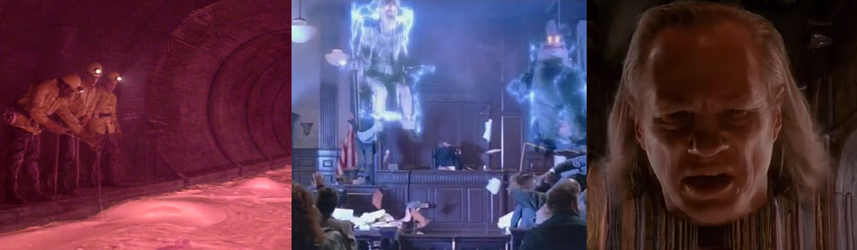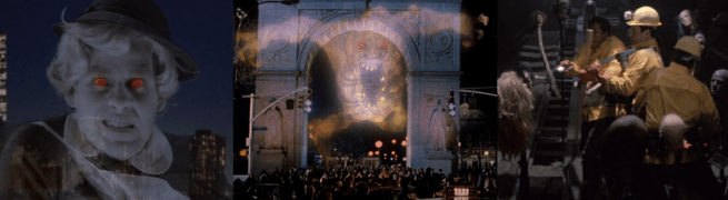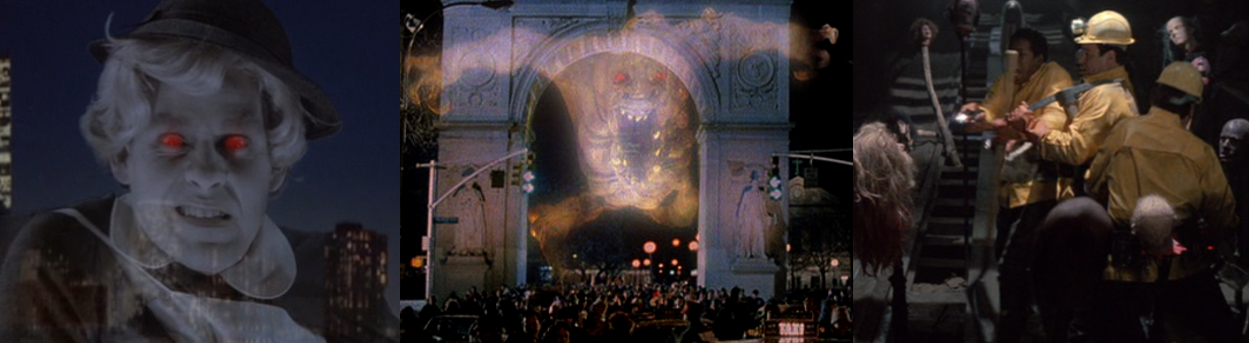 This Ghostbusters also veers into the horror aspect in surprising ways. Obviously, there’s no blood or gore but the ghosts are pretty horrific here, appearing as looming, intimidating spectres that roar and spew ectoplasm and loom from dark corners. The subway ghost (apparently the victim of the electric chair) was surprisingly menacing, as was the gargoyle that terrorises the heavy metal concert and gives Ozzy Osbourne a scare. In fact, the ghosts and the special effects were really impressive here, even though there are obvious moments where the film was pandering to the 3D craze of the time, potentially because the filmmakers are mixing real actors and practical effects with the CGI. Fan favourite Slimer (Adam Ray) even briefly shows up and the Ghostbusters tackle a spectral balloon parade during the final act, eventually being squashed and almost suffocated by an inflatable Mr. Stay Puft. These balloon ghosts were really fun and reminded me of the old cartoon, as did the barrage of malicious spirits Rowan unleashes upon Times Square. While it’s kind of crazy that the ghosts attack one at a time rather than using their obvious superior numbers and powers, this is an impressive showcase of the Ghostbusters’ teamwork, camaraderie, and Holtzmann’s gadgets as they evaporate spirits all over the place. They tackle a skeletal pilgrim, a towering, monstrous corruption of Uncle Sam, and innumerable wicked spirits in an all-action showcase the original film could only dream of. It’s a good thing these special effects work so well as Ghostbusters is crammed full of some of the most egregious product placement I’ve ever seen, to the point where it’s almost painful, to say nothing of its parade of cameos. It’s nice to see the original actors show up but it’s also kind of a slap in the face since they dragged their feet on making a third movie, only to later return to their roles anyway. It just makes me wish the film had been a legacy sequel, or an offshoot following a new team in a new city.