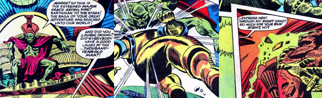Avengers Tower is then attacked by Ultron and his drones, who assist him in battle. Not that he needs it as the Mind Stone allows Ultron to mess up your controls, to say nothing of his signature face and palm beams. Ultron then grows to gigantic proportions, sweeping the area with his eyebeams before Clint Barton/Hawkeye intervenes and Ultron merges with Ultimo. This is the first giant boss battle in the game and sees you blasting Ultimo with cannons and avoiding his massive swipes. The Infinity Sentinel is comparatively smaller, but no less dangerous thanks to its own face beam and missiles. Though you can damage it with Sentinel cores, it’s finished in a cutscene by Erik “Magnus” Lehnsherr/Magneto, who then tosses debris and throws you off balance with magnetic pulses while Juggernaut pummels you and Raven Darkholme/Mystique tosses daggers. After surviving Mystique’s Danger Room trials, you face Magneto, now even tougher thanks to the Power Stone, before being chased away and banished to the Dark Dimension by the Black Order. There, you battle past Loki Laufeyson (who boasts elemental attacks and duplication tricks) to eventually face the dread Dormammu, who wields the Reality Stone and is the second giant boss. You must subdue his minions and avoid his flame bursts, whittling down his magical barrier either directly or be destroying three nearby orbs, all while dodging his giant fists and ground spikes. The brief fight with Maximus Boltagon is far easier, even though the mad Inhuman carries a massive energy cannon and you must take cover in Thane’s energy bubble to avoid Maximus’s barrage of lasers. Ulysses Klaue/Klaw awaits in Wakanda and his sound-based energy blasts and waves must be overcome to rescue and recruit James Buchanan “Bucky” Barnes/The Winter Soldier. You then fight past A.I.M. to confront their master, George Tarleton/Mental Organism Designed Only for Killing (MODOK), who uses the Soul Stone to turn the Dora Milaje against you and attacks with a slew of appendages, from buzzsaw arms, poison gas, failing tentacles, and his signature forehead blast.