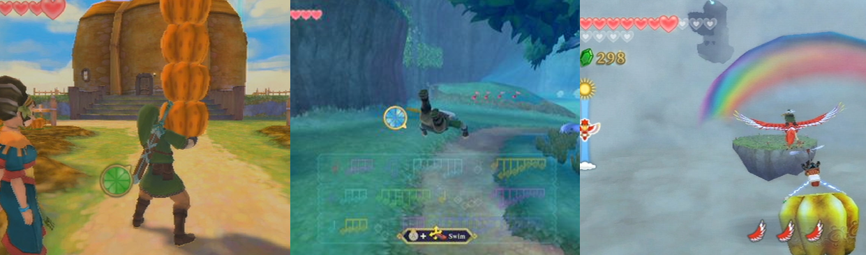 As before, Link’s weapon inventory is painfully limited. It can be expanded by finding Korok seeds, but only one slot at a time and the cost increases as you progress. Link’s defensive options are also tied to his outfits, which are found in chests, tied to tricky side quests, or bought from various shops for ridiculous prices. Instead of relying on gathering Rupees, you’re better off selling the precious gems you find by smashing rocks with rock-Fused weapons. You’ll need to do this as Link won’t last long in extreme heat or cold without the right outfits, and some offer additional perks such as speeding up your swimming rate, rocketing you up waterfalls, resisting elements, and upping your attack and defence. Rather than collecting hearts from defeated enemies, Link can either spend Rupees at an inn, collect a “Light of Blessing” from Shrines, or cook meals. This time, any meals you cook are recorded for easy reference; meals can also have added effects, such as temporarily increasing your maximum hearts and stamina wheel. To permanently extend these, you must trade four Light of Blessings at prayer statues dotted around Hyrule to gain either a new heart container or an extra slither to your stamina wheel, a process that remains as tedious as before. Similarly, you can still sneak up on and tame wild horses, adding them to stables and calling them with a whistle. If you have a Breath of the Wild save file, your horses will even be carried over, which is nice. There is a generous fast track mechanic, as before, but you must again activate towers (revealing more of the map in the process) or beat Shrines to utilise this. Finally, you can jump from high places and glide using your Paraglider and, though you can’t drop bombs like before, you can whip out your bow and use the slowdown effect to pick enemies off and, eventually, speed up your gliding with a gust of wind.