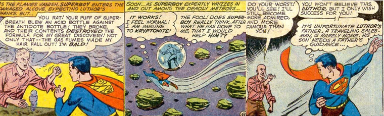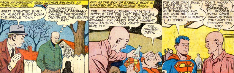 Confused by the concept of the multiverse? Well, Crisis on Infinite Earths has you covered, to a degree, as it opens with (and features throughout) narration and exposition from the tragic Kell Mossa/Pariah. In the beginning, before there was light and life, there was only darkness. Then, from nowhere, came a single light that grew and expanded and finally exploded in “pain [and] relief” as the multiverse was born. The idea is infinite parallel realities all co-exist at once, separated by vibrational planes, though this is noted to not have been the intention when the light burst into being. The story the shifts to one such Earth where the hooded, weeping Pariah witnesses the destruction of not only that world, but the entire reality, at the hands of an all-encompassing white light. As entropy erases everything it touches, Pariah begs to be taken with it, sparing him his grim fate, only to be teleported away as the universe meets its destructive end. We then jump to Earth-3, home of the Crime Syndicate, an evil alternative version of the Justice League. There, Harold Jordan/Power Ring and Clark Kent/Ultraman desperately try to stop the cataclysmic natural disasters springing up across their world as the anti-matter wave approaches. While Thomas Wayne Jr./Owlman and Jonathan Allen/Johnny Quick lament their helplessness against such awesome power, the world’s only superhero, Alexander Luthor, watches helplessly as lifelong enemies like Diana/Superwoman are devoured by the anti-matter wave. With no way to save his world, Alexander rushes to be with his wife, Lois, and baby son, Alexander Luthor, Jr. In a parallel to Superman’s iconic origin, the baby is loaded into a specially prepared rocket and spirited away to Earth-1 as his world dies.