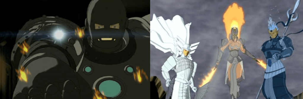 The Mandarin possesses ten mysterious rings, each said to contain a different power. We don’t see the full extent of this here, or learn of their origin, but they’re enough to keep Iron Man at bay if not out-right subdue him. The Mandarin can emit high-frequency waves, control his castle’s mechanisms, and paralyse his foe with a gesture, but we don’t see him commanding elements or anything truly impressive. As if his ten rings weren’t powerful enough, the Mandarin’s castle is one giant trap; he can electrify walls, control stone slabs, and has death traps aplenty scattered throughout. This is cool and all, but I feel like anyone can have a castle fortress; I would’ve liked to see these traps supplanted with more focus on the Mandarin’s rings. Like, instead of having Iron Man faced with crushing walls, have the Mandarin control the stones of his castle with his ring. Instead of electrifying the walls with a lever, have his ring send out lightning bolts or something. The rings are the Mandarin’s gimmick and tie into the whole technology vs. magic aspect that’s at the core of their conflict, but that’s not really emphasised here. We never learn the origins of the rings, so for all we know they’re technological in some way, and the Mandarin isn’t depicted as a sorcerer, despite his appearance. Speaking of which, the Mandarin is a…controversial figure, for sure. Exuding Fu Manchu vibes, he’s a stereotypical “Red Menace” type with his little goatee and painfully slanted eyes and clawed hands. His appearance is close to that of a demon at times but hampered by his bland outfit. Consisting of heavy green robes sporting a big, stupid violet “M” and a gaudy matching mask, the Mandarin’s appearance completely negates the very real threat he poses, which is a shame as the story goes to great lengths to build him up as this fearsome foe and then lumbers him with a truly awful outfit. We learn nothing of the Mandarin except that he’s greatly feared, quick to anger, proud, and boasts incredible, unknowable power. He has desires for world domination, sure, but doesn’t appear to have done anything towards that except amass power, yet Iron Man immediately recognises that he’s this formidable enemy to the free world. I dunno, I guess I just expected a bit more from this since the Mandarin is the quintessential Iron Man villain in my eyes, but he just came across as another madman in a castle and a “villain of the month” figure here, which was disappointing.