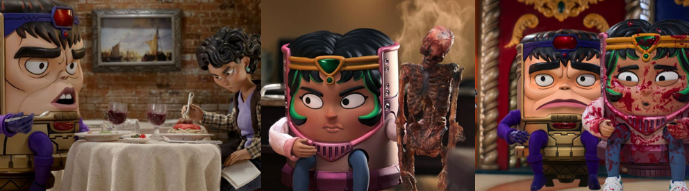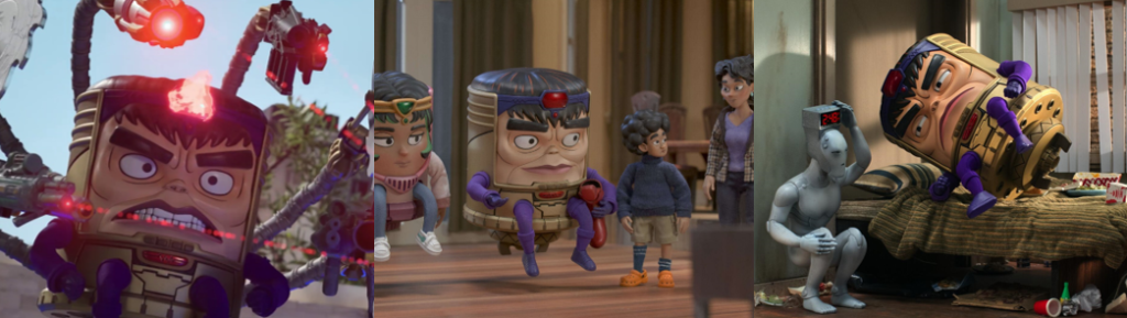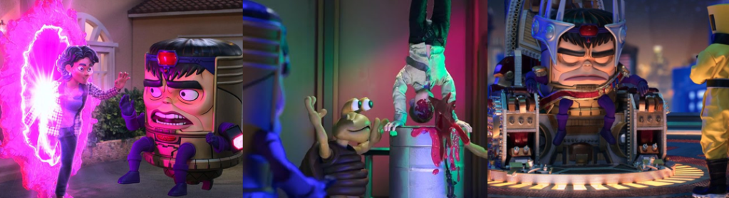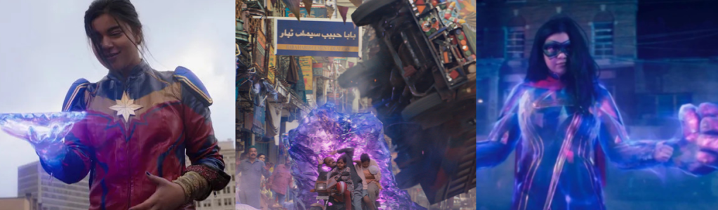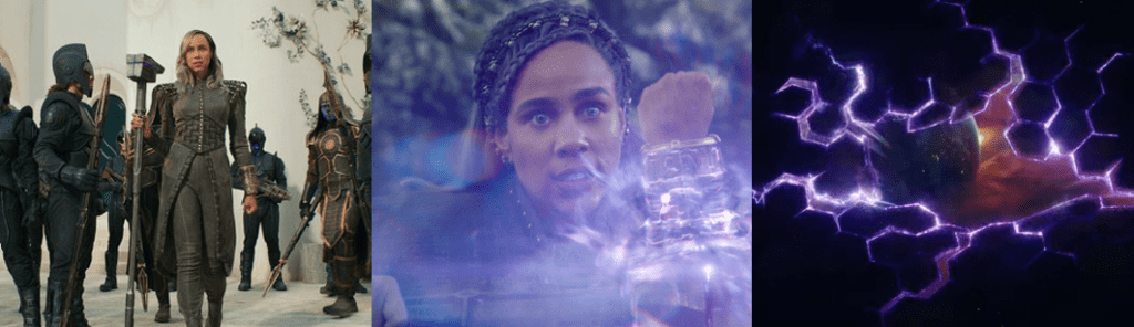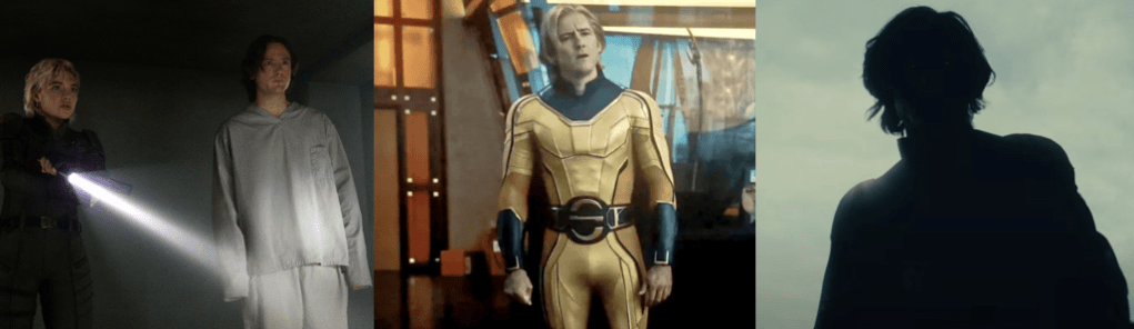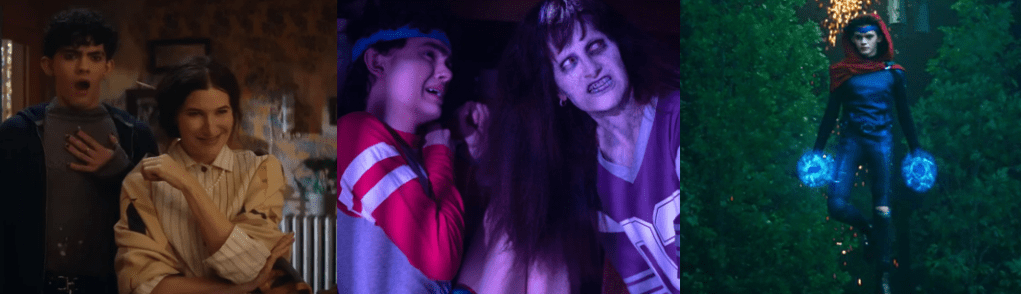 Much of the miniseries revolves around the mystery of Teen, a talented but inexperienced witchling who carries a pocketbook of spells and is eager to travel the Road to gain ultimate power. Agatha is intrigued by his true nature and becomes very attached to him, pleading with Jen to save him in “If I Can’t Reach You / Let My Song Teach You” (Goldberg, 2024), but ultimately unable to deny her selfish nature. Like Agatha, Teen gets a spotlight episode in “Familiar by Thy Side” (Monteiro, 2024) that reveals he’s more than just a familiar face from WandaVision. Originally William Kaplan, Teen died in a car crash caused by Wanda’s Westview Hex and was possessed by the soul of her son, Billy. However, Kaplan awoke with amnesia and to find he could read minds, finding only worry in the heads of his parents (Maria Dizzia and Paul Adelstein) and living the next six years with no idea of who he really was. Supported by his boyfriend, Eddie (Miles Gutierrez-Riley), Kaplan meets with traumatised former Westview resident Ralph Bohner (Evan Peters) and learns of Wanda, her kids, and Agatha, realising what happened and believing that the Witches’ Road could lead him to his twin brother, Tommy (Jett Klyne). Thus, Teen breaks into Agatha’s house where she was living out her cop drama fantasy and deceives her into letting him tag along, unaware that she suspected his true identity when the Witches’ Road turned out to be real and not a con she’d made up. Though protected by Lilia’s sigil, Teen’s powers are unstable, manifesting when his emotions are at their peak, yet Agatha sees the potential in him to wield the same destructive powers as his mother. While Teen comes to resent and reject Agatha, refusing to trust her and renouncing the Witches’ Road, her tutelage allows him to locate Tommy’s soul and bind it to a dying boy, resurrecting him somewhere in the world. Teen also embraces his dual identity and even receives a glow up in “Follow Me My Friend / To Glory at the End” (Monteiro, 2024), wearing a variation of his Wiccan costume and coming to Agatha’s aid against Death.