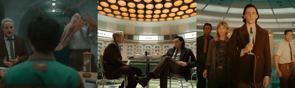 Much like WandaVision, Agatha All Along begins in something of a fantasy world, with Agatha living a crime drama fantasy as “Detective Agnes O’Connor” that the residents of Westview tolerate and even encourage to keep her placated. While Agnes of Westview only lasts for the first episode, “Seekest Thou the Road” (Schaeffer, 2024), the spirit of WandaVision is further evoked when Agatha and her coven journey across the Witches’ Road and revisit the 1960s, 1970s, and 1980s, dressing accordingly and even dealing with supernatural elements not dissimilar from The Exorcist (Friedkin, 1973) and Sam Raimi’s Evil Dead films (1981 to 1992). Enchanted by Wanda as recompense for her heinous actions, Agatha spends three years believing herself to be a tough, no-nonsense Westview detective called to solve a murder frustrated by Federal Agent Rio Vidal (Plaza). While Agnes begrudgingly shares her theories with Vidal, the agent appears coy, questioning her lifestyle choices and her ties to Westview, adding to Agnes’s frustration and unease. This is only exacerbated when Agnes almost pieces together that the victim’s book was the Darkhold, a mythical tome that corrupts anyone it touches. When questioned by Vidal over pizza and beer, Agnes as a mind blank regarding her life outside of Westview and cannot remember why she hates Vidal beyond Agnes being naturally abrasive. After apprehending a teenage thief (Locke) who breaks into her house searching for the “Road” and unnerves Agnes with an incantation, Agnes’s true memories finally return (with some prodding by the mysterious Vidal). Incensed that Wanda has taken her powers, Agatha scuffles with Vidal, seemingly a fellow witch who begrudgingly allows Agatha to regain her full strength for a more competitive battle but alerts the venge-seeking “Salem Seven” to Agatha’s location.
