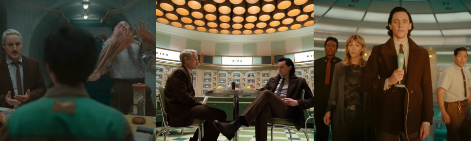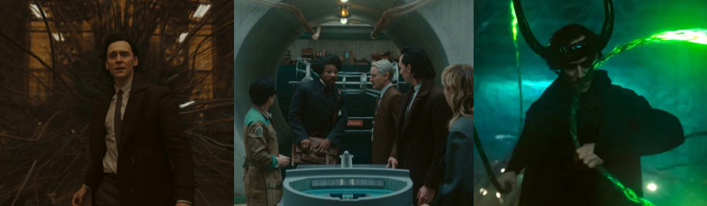 Much like WandaVision, Agatha All Along begins in something of a fantasy world, with Agatha living a crime drama fantasy as “Detective Agnes O’Connor” that the residents of Westview tolerate and even encourage to keep her placated. While Agnes of Westview only lasts for the first episode, “Seekest Thou the Road” (Schaeffer, 2024), the spirit of WandaVision is further evoked when Agatha and her coven journey across the Witches’ Road and revisit the 1960s, 1970s, and 1980s, dressing accordingly and even dealing with supernatural elements not dissimilar from The Exorcist (Friedkin, 1973) and Sam Raimi’s Evil Dead films (1981 to 1992). Enchanted by Wanda as recompense for her heinous actions, Agatha spends three years believing herself to be a tough, no-nonsense Westview detective called to solve a murder frustrated by Federal Agent Rio Vidal (Plaza). While Agnes begrudgingly shares her theories with Vidal, the agent appears coy, questioning her lifestyle choices and her ties to Westview, adding to Agnes’s frustration and unease. This is only exacerbated when Agnes almost pieces together that the victim’s book was the Darkhold, a mythical tome that corrupts anyone it touches. When questioned by Vidal over pizza and beer, Agnes as a mind blank regarding her life outside of Westview and cannot remember why she hates Vidal beyond Agnes being naturally abrasive. After apprehending a teenage thief (Locke) who breaks into her house searching for the “Road” and unnerves Agnes with an incantation, Agnes’s true memories finally return (with some prodding by the mysterious Vidal). Incensed that Wanda has taken her powers, Agatha scuffles with Vidal, seemingly a fellow witch who begrudgingly allows Agatha to regain her full strength for a more competitive battle but alerts the venge-seeking “Salem Seven” to Agatha’s location.