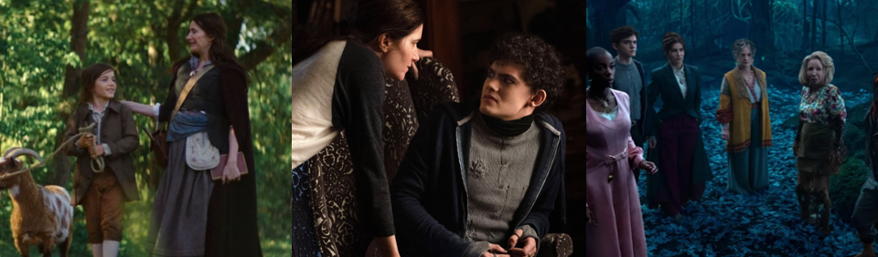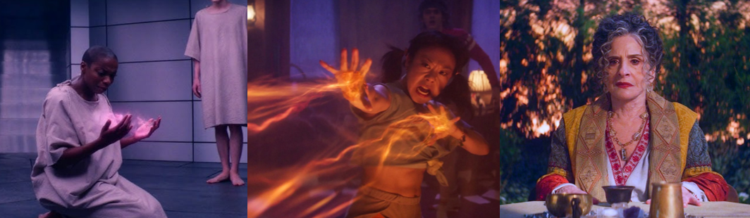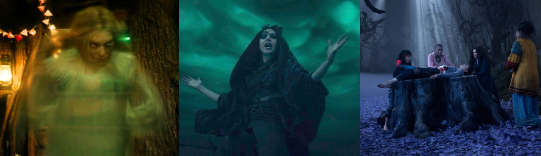 While Lilia has no interest in joining the coven and is content as a fortune teller, Jen runs a successful (if dubious) skin care business, and Alice is perfectly happy believing the Witches’ Road is merely a fairytale that made her mother (Elizabeth Anweis) a rock star and led to her death, the three begrudgingly join the coven to regain their magic and out of curiosity regarding the Road. Each is chosen according to the legendary “Ballad of the Witches’ Road”, which calls for witches proficient in different magics, and each has their craft testing by the Road. Jen, who was accidentally bound by Agatha a hundred years ago, is pushed to cobble together an antidote in “Through Many Miles / Of Tricks and Trials” (Goldberg, 2024) and even saves Teen’s life after he’s injured conjuring the winged demon that’s cursed Alice’s bloodline. Alice learns that her mother performed “The “Ballad of the Witches’ Road” to protect her from this curse and gets to put it to rest before unexpectedly dying trying to save Agatha. Equally, the Road gives Lilia the chance to finally feel a sense of belonging after being left despondent at failing to save her previous coven with her clairvoyancy, which sees her experience time in a non-linear way and therefore appear crazy. The one outlier is Agatha’s kindly neighbour, Sharon Davis (Rupp), returning from WandaVision, who’s duped into joining the coven and dies during their first trial since they’re too busy squabbling to work together. She’s replaced by Vidal, an unpredictable and sadistic green witch who refuses to elaborate on her true relationship with Agatha, which is repeatedly depicted as frosty. Although the group are largely suspicious of each other, particularly the enthusiastic Teen and the untrustworthy Agatha, they soon bond, sharing stories of their personal tragedies and regrets, resulting in Jen being distraught when Lilia sacrifices herself in “Death’s Hand in Mine” (Schaeffer, 2024).