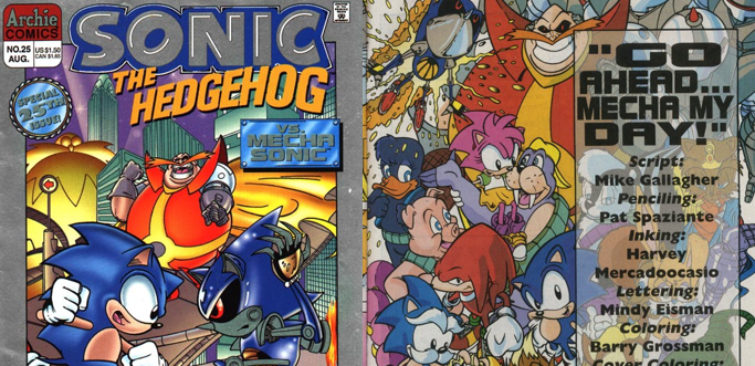 The Background: SEGA were quick to capitalise on Sonic’s popularity once he catapulted to mainstream success and helped them to usurp Nintendo’s position at the top of the videogame industry. Following Nintendo’s success with DiC, SEGA licensed a series of cartoons that were soon accompanied by a four-part miniseries published by Archie Comics. Archie’s Sonic the Hedgehog comics went on to become the longest-running videogame comic book ever and, amidst continuing the adventures of the Knothole Freedom Fighters, the Archie comics weaved in storylines, characters, and elements from the videogames, often changing them to fit their unique narrative. Although a mechanical version of Sonic had featured in Archie’s comics prior to this story (and many more would follow over the years), Sonic’s most recognisablerobotic duplicate debuted in the comic’s twenty-fifth issue as part of a loose adaptation of Sonic CD and would go on to continuously plague the hedgehog and his allies even when IDW swept away Archie’s continuity in favour of their own.