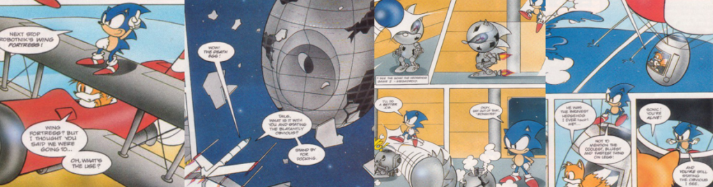 The Background: Sonic the Hedgehog was a massive success for SEGA; thanks to an aggressive marketing campaign and including it with their 16-bit Mega Drive, SEGA saw sales of over 15 million copies upon its release. However, all was not right at SEGA as Sonic mastermind Yuji Naka quit for the California-based SEGA Technical Institute. After bringing in many of his own Japanese staff, Naka spearheaded the creation of a sequel while an entirely separate, Japan-based team worked on Sonic the Hedgehog CD(SEGA, 1993). Though mired by an influx of ideas, another internal contest decided Sonic’s new sidekick, Miles “Tails” Prower, and improved graphics and gameplay saw Sonic 2 become incredibly successful; 400,000 copies were sold in its first week alone, with over 6 million units during the Mega Drive’s lifespan. SEGA’s control of the home console market shot up by 40% as a result of Sonic 2; the game was widely praised upon its release and is still held in high regard, with many claiming that it is the best in the series. This, more than anything, helped catapult Sonic to mainstream success and saw SEGA briefly usurp Nintendo’s position at the top of the videogame industry and SEGA were quick to capitalise with a slew of merchandise, including cartoons and comic books. About six months after Archie Comics began publishing a weird amalgamation of the Adventures of Sonic the Hedgehog (1993 to 1996) and Sonic the Hedgehog/SatAM (1993 to 1994) cartoons, United Kingdom publisher Fleetway Editions Limited brought us “Britain’s Official SEGA Comic”, Sonic the Comic (StC), a fortnightly publication that I collected diligently until its unfortunate end. Though pulling much of its lore from the now-defunct Mobius and Doctor Ovi Kintobor storyline that was prevalent outside of Japan, StC quickly veered away from the source material to recast Sonic the a mean-spirited leader of a gang of Freedom Fighters made up of both videogame characters and anthropomorphic characters adapted from the videogames. Like the Archie comics, StC often included a few very loose adaptations of the videogames, though these were often heavily truncated and adapted to fit with its noticeably different lore. Sonic 2 was no different, with many elements of its plot and gameplay being loosely peppered throughout the comic’s early issues.