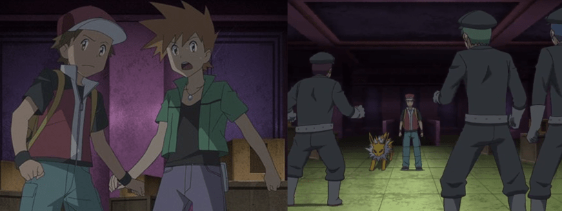 Red and Blue begrudingly team up but Team Rocket are easily defeated despite their reputation.