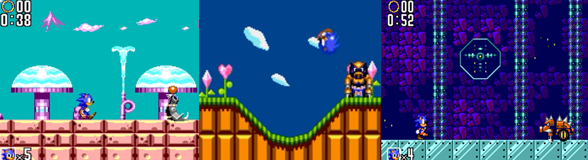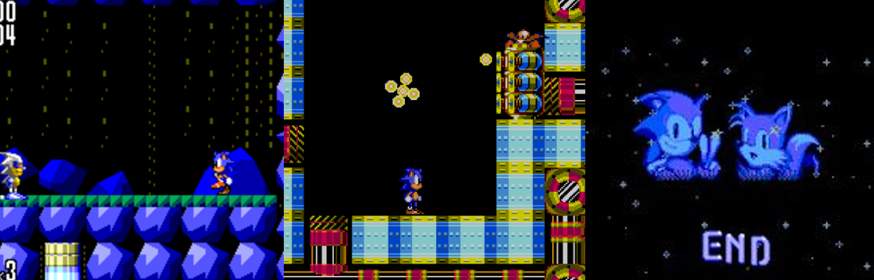 Speaking of Sonic’s robotic doppelgänger, you’ll encounter Silver Sonic at the end of Scrambled Egg Zone. Despite its sleeker, more futuristic appearance, though, Silver Sonic is far easier to take on; it tries to slap you with an extending arm and will repel your Spin Attack with one of its own but is otherwise very easy to attack when it’s standing out in the open or trying to charge at you with its rocket boots. If you didn’t find the five Chaos Emeralds before this boss, your game will end here but, if you did, Silver Sonic relinquishes the sixth and final Emerald and you get to play Crystal Egg Zone. This culminates in a final battle against Dr. Eggman; this time, he summons spinning energy balls, arena-filling electrical storms, and little thunderbolts to try and kill you but, while this fight is certainly more harrowing than in the last game, it’s actually more about patience and timing. Sonic must hop into the tubes and circle the arena over and over, popping out to land a hit only when the timing is right and the hazards are gone, which can take some time and be a bit frustrating. Once you defeat Dr. Eggman, he’ll flee once more but, rather than delivering a final blow, Sonic is content to be reunited with Tails.