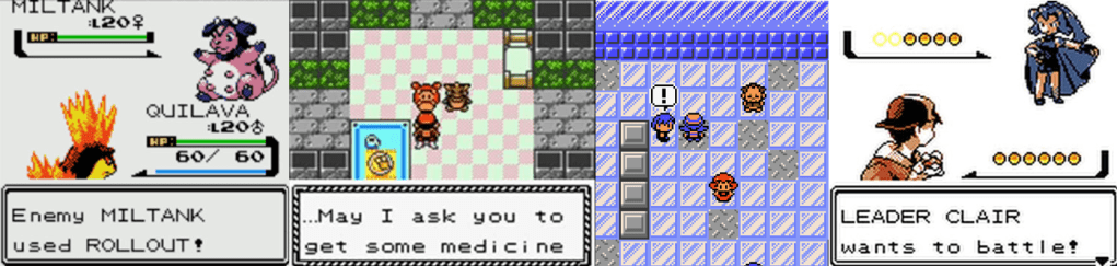 Enemies and Bosses: In your quest to conquer the Pokémon League, you’ll battle a wide variety of Pokémon both in the field and in use by various Pokémon Trainers. Wild and Trainer Pokémon begin at low levels, generally between three and six, but get progressively stronger as you advance to new areas and when you’re called for a rematch, which will help you to grow stronger on a rising curve. Your ability to weaken these Pokémon for capture or defeat them is directly tied to your Pokémon’s current level and moves; if your Pokémon is weak and only knows moves like Bubble and Leer or bring an Electric-Type into a forest or a Bug-Type into a cave you’ll struggle to advance. The same applies to Pokémon Trainers; they start off using one or two weak Pokémon like Sentret and Spinarak but eventually use more formidable and evolved Pokémon. They’ll also withdraw them, heal them, or buff them with items and, while you can exploit the enemy A.I. at times, Pokémon Trainers tend to use moves that have a Type advantage over your current Pokémon. Pokémon: Crystal introduces new moves that can prolong or frustrate battles as well; Protect will render your next attack useless, Spikes will damage any Pokémon you send into battle, and some moves, like Dynamic Punch, not only hit hard but also inflict confusion on their victim. Still, with enough grinding and a diverse team, you can easily overcome every opponent you face; simply take some time between Gym battles to level-up, develop specific stats if that’s your jam, and bringing your team as close to the level cap as possible, utilising moves that are super effective and sharing EXP wherever possible, and you can easily trample over the opposition once you’ve gotten past the uphill battle at the start of the game.