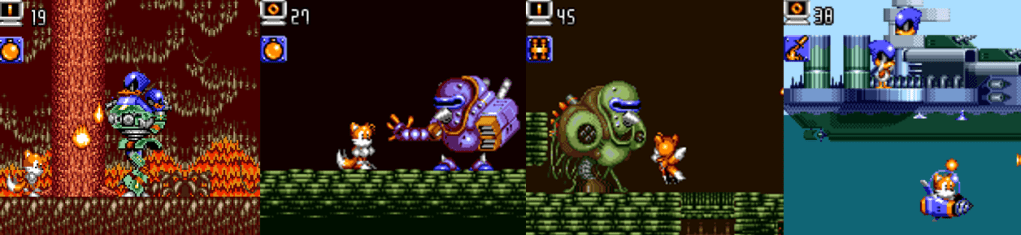 Perhaps the most bonkers Zone is Crystal Egg, which is populated by flying fish Badniks, cacti plants, falling crystal blocks, and a maze of translucent scenery that is a far cry from the mechanical hellscapes of most final Zones. Indeed, Scrambled Egg Zone (which bares more than a few similarities to Hidden Palace Zone from later Sonic titles) arguably would have been a better choice for the final stage, especially as the final boss is fought in an arena that’s more like Scrambled Egg Zone than Crystal Egg Zone. In addition to featuring a short opening cutscene, more detailed title cards (which replace the map of the last game and, oddly, feature Tails accompanying Sonic), and the traditional ending cutscene (including a cute little sprite of Tails), the game’s music is also quite a step up. Still featuring jaunty, catchy chip tunes, Sonic 2’s music is much longer and more layered than in its predecessor and more than makes up for the game’s less impressive sound effects (though the “SE-GA!!” chant at the beginning was a welcome and unexpected addition).