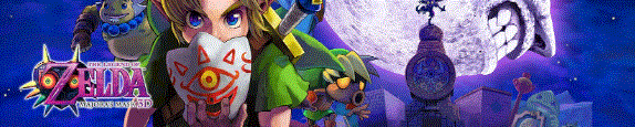 Gameplay and Power-Ups: The Legend of Zelda: Majora’s Mask is a 3D action/adventure game that’s built upon the same game engine as its predecessor, Ocarina of Time, and therefore shares many of the same controls, gameplay mechanics, and features. In a rarity for the franchise, players control the same Link is in the previous game, though returned to his child body (and you can change his name when starting a new file) and exploring a bizarre new land filled with many familiar, but noticeably different, characters. Link’s goal is simple: he has three days to stop the possessed Skull Kid from destroying Clock Town and all of Termina with a giant, nightmare-fuelled moon. To do this, players journey to four areas adjacent to Clock Town, tackle the dungeons (or “Temples”) found there, and defeat the bosses within to awaken the Four Giants, the only beings physically capable of pushing back the Moon. However, your mission is compounded by the ever-present time limit, the drama and side quests of the various non-playable characters (NPCS) Link meets, and the numerous magical masks he obtains along the way. Link’s abilities will be immediately familiar to any returning Ocarina of Time players: A sees you talk to NPCs, open chests, and interact with the environment while B lets you attack with your sword, swiping, stabbing, and even jumping when used in conjunction with A. The Left Trigger activates “L-Targeting”, allowing you to lock on to enemies, NPCs, and other targets and expands your attacking options by letting you raise your shield to deflect attacks and projectiles with the Right Trigger, side hop, backflip, and leap into action.