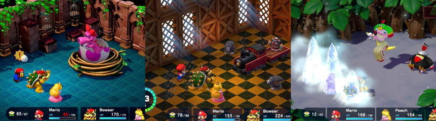 The first boss you encounter is the Ghost Rex, a gigantic, robot Tyrannosaurus rex that stomps around in the background, stalks around your small stone platform, and tries to munch you with its powerful jaws. Dodge this attack to attack its head and repeatedly strike it when it tries to charge from either side of the platform and you’ll eventually fall to a cavern, where the Ghost Rex elongates its neck to try and crush you and cause shockwaves. The Ghost Pendulum is fought on a ring and stays out of reach and you must run around in a circle, striking its low-hanging fruit to smack them into it. As the fight progresses, more balls appear, with some sporting spikes and electrical barriers and the boss dropping to create shockwaves, which can all be tricky to avoid. The Ghost Kraken is also fought on a ring; it spins its tentacles to attack you, but you can smack these (especially the jewelled one) to damage it. It also tries to grab and slam you into the ground, forces you underwater, and spits ink to either stick you in place or obscure the screen. The Ghost Pirate awaits on the Haunted Ship, spewing fireballs and flaming vortexes and attacking with kicks and its cutlass. You must target the glowing red core, which eventually detaches and must be chased around to deal more damage, which can be tricky, especially if the ship’s swaying. The Ghost Whale is one of the most unique bosses as it’s fought on a rapidly deteriorating ice float. You must smack it when it charges to jump inside, where you have thirty seconds to battle to its inner core, destroying pods for more time and avoiding freezing hazards and ridable missiles.