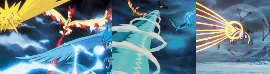 Zapdos refuses to listen to reason and doesn’t seem to care about the effect this has on the environment; it just wants to lord over more land and, when the three birds are unleashed, they engage in all-out war against each other. The effect this has is destructive and immediate but also causes a greater threat to emerge beneath the ocean, where the true “Beast of the Sea” rages; this swirling mass of energy causes catastrophic weather changes across the world and threatens the safety of everyone. With the Legendary Birds raging out of control, Lugia finally arises to put an end to their conflict; like Mewtwo (Philip Bartlett), Lugia is fully capable of communicating with the human characters using is psychic abilities and, from it, they learn that they must bring all three treasures to a shrine and they play the Guardian’s Song in order to calm the warring trio down. While Lugia is extremely powerful, the numbers game overwhelm it constantly and its strength is directly tied to the success of the Chosen One; as a result, while it does everything it can to subdue the trio with brute force, it isn’t until Ash is able to fulfil his destiny that its powers are finally able to quell Articuno, Zapdos, and Moltres and thus dissipate the environmental catastrophe that threatens the entire world.