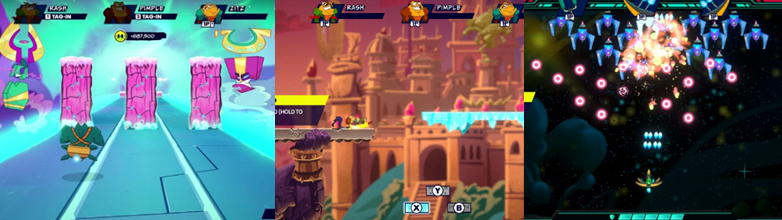 There are two Extra Honeycombs in every area of Grunty’s Revenge, requiring all your abilities to uncover them to fully extend your health bar, and 600 Musical Notes and ten Jiggies in each as well. You won’t need all of them to learn every move or unlock every world, but you will need at least fifty Jiggies to reach the final boss gauntlet. However, if you want to see the best ending, you’ll need 100% of these collectibles, something that’s a tall order thanks to Breegull Beach’s timed challenge, let alone the final boss. When you finish the game, you play one last sliding game as the credits roll, collecting gold coins as you go. These are spent at an arcade machine in Breegull Beach, where you can replay the mini games at will.