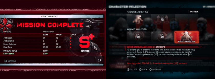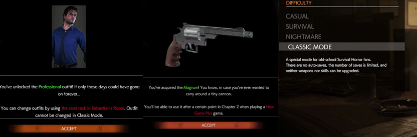 There are thirty-nine Achievements on offer in Resident Evil 4 by default, with many unlocking simply by completing the story chapters, besting the monstrous bosses, and beating the various difficulty modes. While you won’t get an Achievement for aggravating Del Lago or looking up Ashley’s skirt, you will for rescuing her as she’s being carried away, for parrying incoming attacks, destroying all of a Regnerator’s parasites in a single shot, and selling an item for many times its usual value. Achievements also come from fully upgrading weapons, finding and destroying all of the Clockwork Castellan toys scattered throughout the game, escaping certain areas without taking damage, defeating certain bosses in specific ways, and finding every treasure (something greatly aided by purchasing the Merchant’s treasure maps). Not only are you graded on your time and performance at the end of the game, each chapter ends with a rundown of your accomplishments. These are tied to the Achievements and the in-game challenges that earn you Completion Points (CP) to spend in the “Extra Content” section. This is where you’ll unlock character models, concept art, and additional costumes and weapons. Beating the game on different difficulty modes unlocks various rewards, such as a dapper noir outfit for Leon, sunglasses and masks, the even harder “Professional” mode, and all your weapons, charms, and remaining treasures carry over to your next save file. Sadly, however, unlocking Ashley’s super useful suit of armour is much harder this time, requiring at least an A-rank completion of “Hardcore” mode. You’ll also need to destroy sixteen Clockwork Castellans to get an unbreakable knife, clear “Professional” mode for a bad-ass hand cannon, and shell out a whopping 2,000,000 pesetas for the infinite rocket launcher.
