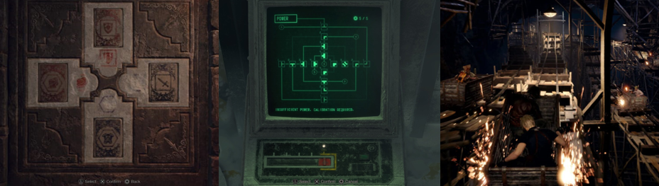While much of Resident Evil 4 is familiar to anyone who’s played the original game, some of the puzzles and sections have been reworked. You’ll no longer run away from a giant stone version of Ramon Salazar or deal with that flame-filled room, for example, but these elements have been reworked into the tower section, meaning you not only have to avoid barrels coming down the spiral staircase but also take out Salazar’s giant stone visage to avoid being roasted alive. The light puzzle in the church is different, I’m pretty sure I don’t remember exploring a bunch of different caves to find shrines in the original, and I believe the dissection lab has a new power reroute puzzle that wasn’t there before. I do recognise some of the puzzles, though; you’ll still be traversing that damn hedge maze, still have to wait for the lift to come while fending off the Verdugo (now pulling levers to temporarily freeze it with liquid nitrogen and parrying it when it destroys these controls), and you’ll still have to watch your step when crossing rickety wooden bridges. You can still save a dog for an assist later on, still shoot lanterns to set enemies on fire, and still use explosive barrels to take out hordes of enemies. You and Ashley will sometimes have to turn wheels or levers or simultaneously pull switches or create new paths or open doors, or you’ll command her to do this while you explore further and protect her. You’ll be finding keys to unlock doors and drawers, taking the long way around to unbolt doors and create shortcuts, upgrading key cards, finding spheres that need to be rotated to form the Los Illuminados’ symbol, shooting gongs, sitting at the right tables as dictated by paintings, completing sword puzzles, and racing along on minecarts at breakneck speed, struggling to stay on the track, take out enemies, and avoid dead ends. If things get too tough for you (and it can get a bit hairy when you’re surrounded by enemies that only become stronger when you defeat them), you can lower the game’s difficulty. “Assisted” mode enables a health regeneration system and lowers the cost of items, but generally you can get by on “Standard” if you conserve ammo and make good use of the melee attacks, knife, and environmental aids dotted around the place.