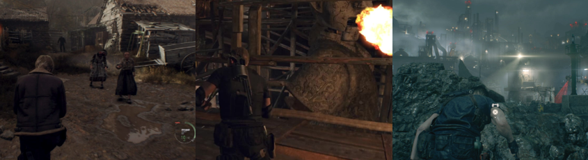 All the key areas from the original game return here, including the main village, a sprawling castle, a network of dank caves and mines, and the fortified island the serves as the finale. You’ll visit graveyards, churches, houses (both abandoned and occupied), forgotten laboratories where bizarre genetic experiments lurk, medieval dungeons and hallways, and a veritable war zone in the end game as you navigate past barricades, narrow corridors, and ransacked areas where enemies lurk around every corner. Everything has a much higher level of detail; you can push obstacles out of the way as well as hop over or through them, files are scattered about to flesh out the local lore, and gameplay is frequently interrupted by exposition dumps from Ingrid Hunnigan or taunts from Saddler and his cohorts. Every cutscene and comms chat can be interrupted, which is great for subsequent playthroughs, and the sheer sense of foreboding atmosphere is unparalleled here as you’re never sure what’s lurking around even the most familiar corridors. Enemies can toss weapons at you, clamber up ladders, and will shout for help when they spot you. Later on, spider-like parasites will scuttle about and attach themselves to regular enemies, making them more formidable, and you’ll be constantly deactivating explosives, avoiding those ever-annoying bear traps, and redirecting gun turrets to clear your path. As ever, music plays a key role in alerting you to when there’s danger present; when it dies down or is more tranquil, you’re safe to explore and regroup. The dialogue and script has also been slightly tweaked; while Leon still has a lot of sass, some of the cheesier lines have been removed. There’s also an additional haunted quality to Leon as he struggles to reconcile the horrors he saw in Raccoon City and make amends for his mistakes with his newfound training.