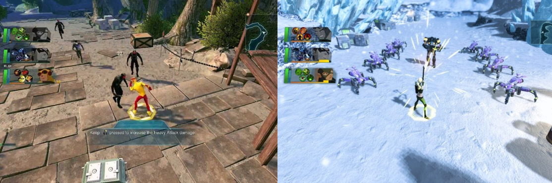 Gotham City is an expansive open-world map full of overground trains, built on top of the Court of Owls’ grimy tunnels, and filled with colourful characters. However, certain missions will restrict you to a specific game area, an isolated and reskinned version of the map tailored to that villain, and this is where things really get visually interesting. When confront Doctor Victor Fries/Mr. Freeze at the Elliot Center and Blackgate Prison, Gotham is ravaged by a vicious snowstorm; ice and snow are everywhere, with innocents caught in the crossfire, and it really helps set the mood for the battles against Mr. Freeze. Similarly, you’ll explore the gothic and ransacked remains of Arkham Asylum, enter the Gotham General Hospital after it’s received a makeover by Harley Quinn, and even venture into the ruins of the Batcave, giant dinosaur and penny and all, as you track down the Court of Owls. While it’s often difficult to see in these areas and they’re fraught with danger, they help to mix up the gameplay and the visuals and the enemies you encounter, from Mr. Freeze’s Regulators to the sword-wielding League of Shadows, then start to appear on the overworld, and in stronger forms, to help keep things a little interesting even as you complete the same tasks over and over. It’s fun just barrelling through the streets or taking to the rooftops, stopping crimes along the way to your next objective and stumbling across side quests as you go; there are various items to examine or interact with, generally for exposition or to aid you in combat, and lots to see and do in terms of customisation, though I found the menus a little finnicky to navigate at times.