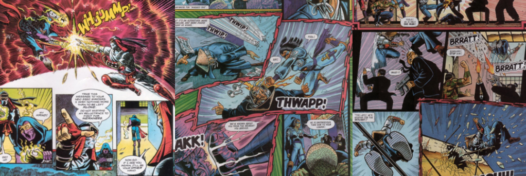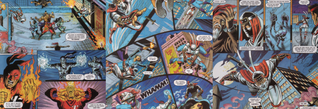 Yeah… there’s a reason I often skipped the Shinobi stories when reading Sonic the Comic. It was honestly rare for any of the backup stories based on SEGA’s other properties to be any good and some, like the Decap Attack (Vik Tokai, 1991) strips, far outstayed their welcome, and I have to say that Shinobi falls into this category as well. On the plus side, the art and writing is very consistent, with the same duo working on all of Joe Musashi’s appearances, and the stories have a far more mature edge compared to StC’s norm. While Musashi naturally has a code against killing and thus isn’t slicing his opponents up with his sword, there’s a touch of blood across these stories, many references to death, a fair bit of violence (Musashi gets his ass kicked a lot and even suffers broken ribs), and there is that one panel where a Yakuza gets gunned down! The writing does fall apart under close scrutiny, however, with Musashi being an avid reader of Sun Tzu and yet constantly being tricked and falling into obvious traps. He often finds innovative ways to counterattack physically superior foes and isn’t averse to fighting dishonourably, but it’s odd seeing his vow against killing be repeated so often and to then watch him send a ninja plummeting down an elevator shaft without even a moment’s reflection. I did like the flashbacks to his training, where Musashi was a capable and formidable warrior in all aspects of combat and yet still somewhat naïve, reluctant to break the Bushido code and needing to learn that the rules must be bent in real-world conflicts. He still sees himself as walking a higher path compared to his enemies, sparing their lives whenever he can and always attacking with the hilt of his sword or opting to knock out his enemies. However, even Shinobi still has much to learn as Kotomi-Sensei exhibits mystical abilities that dwarf even his unreliable haregai and his overused prana.