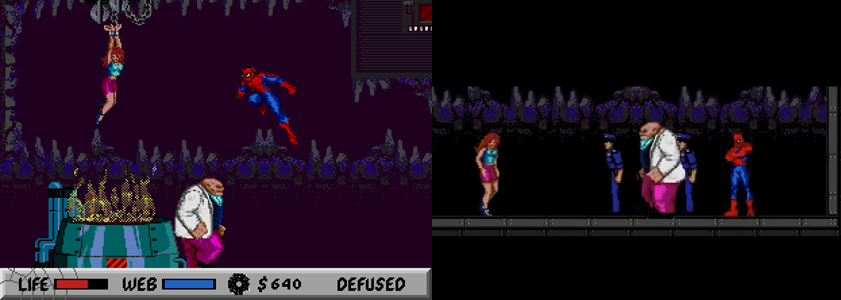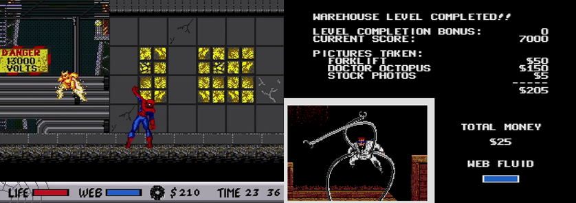 Realising that the kids are in danger and wary of the Sandman’s tricks, Spider-Man opts to hurl the brute out of the classroom when he hardens himself, but the Sandman quickly recovers and puts the pressure on Spidey by relentlessly trying to pummel him with his enlarged, hammer-like fists. Spider-Man lures the Sandman to the school gym, only for his webbing to fail him when the Sandman simply passes through it like…well…sand. The Sandman corners Spider-Man, who reacts on instinct and ends up with his arm trapped in Marko’s body. This allows the Sandman to repeatedly headbutt the web-slinger with his rock-hard head, forcing Spider-Man to desperately drive Marko into an iron stairway post to free himself and avoid being headbutted to death. The Sandman quickly reforms himself, ensnares Spidey’s ankles by turning his body into quicksand, and envelops the teenage hero with his entire body, encasing him within a ball of sand. Thinking fast, Spider-Man bounces his foe down to the school basement and slips free from his prison; he then plays to the Sandman’s arrogance by threatening him with an electric drill. Naturally, the Sandman simply turns his entire body into sand particles to render the tool harmless, but this is exactly what Spidey was hoping for; he quickly grabs a huge industrial vacuum cleaner and turns it on the Sandman, sucking him up and imprisoning him within a big metal capsule. Spidey then realises that he didn’t get a chance to snap any pictures of the fight for Jameson, so he fakes a few by snapping photos of himself tussling with some sand he tosses into the air! Jameson then inexplicably shows up at the school and starts barking orders at the cops with no care for the safety of the students inside. He angrily accuses Spider-Man of being in cahoots with the Sandman, so Spidey simply delivers Marko to the cops and changes back into Peter Parker. His joy at this victory is short-lived, however; not only does Jameson take the cost of developing his photos out of his pay, Liz and the others continue to berate him for being a coward and a bookworm, and Jameson uses Peter’s photos to further his vendetta against Spider-Man, leaving Peter despondent but nonetheless determined to continue using his powers for good.