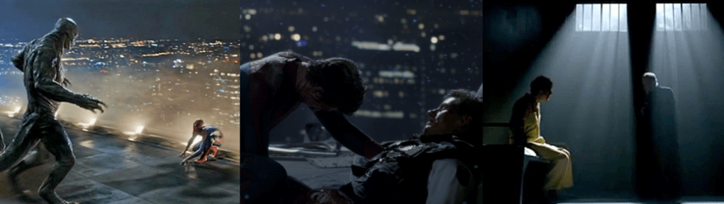 This culminates in an action-packed and emotionally charged finale. After clashing with Captain Stacy over branzino and their different opinions on Spider-Man, Stacy goes all-out to try and apprehend Spider-Man even after confirmation of the Lizard’s threat. After realising Dr. Connor’s plot, Spidey races to stop him and is accosted by the cops, eventually shot mid-swing with a taser bolt and left unmasked before the police captain. Stunned, realising he’s been mistaken and yet conflicted between his duty and his morals, Stacy reluctantly allows Peter to leave but Spidey takes a bullet in the process. Luckily, Jack’s father organises some crane operators to clear a path to Oscorp Tower, though the injured Spidey is physically outmatched by the monstrous scientist. Luckily, Stacy (…somehow…) arrives in time to help with a shotgun and the anti-lizard cure, courtesy of the resourceful Gwen. Unfortunately, though Stacy slows the Lizard with repeated shots and some well-placed liquid nitrogen, he gets skewered through the gut, though Spidey just manages to insert the cure before the device activates. The results are near-instantaneous, painfully reverting the Lizard and restoring his sanity in time to not only save Peter and lament the loss of his arm but to realise the gravity of his murderous actions. Though Peter tries to save him, the mortally wounded Stacy begs him off and reconciles with the young hero, begging Peter, with his dying breath, to leave Gwen out of his double life for her safety. Though grief stricken, Peter honours Stacy’s wishes, ending the relationship, only for Gwen to realise it’s because of her father and for Peter to almost immediately walk back his promise, which I think was supposed to be a subversion of Spider-Man’s ending but came across as a bit awkward and spiteful on Peter’s part. Though Peter heads out into the night for a celebratory swing, now fully embracing his newfound purpose as Spider-Man, he’s unaware that a mysterious individual (Michael Massee) visits the remorseful, incarcerated Dr. Connors regarding the Parkers, hinting at some deeper plot concerning Peter’s parents…
