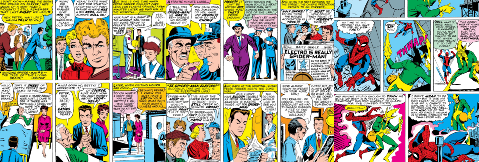 Peter’s issues only worsen as a rainstorm sweeps the city, ruining any chance of taking decent photos of Spider-Man and getting cash from his tight-fisted employer, J. Jonah Jameson. Speaking of the grouch, we jump to the next day to find Jonah getting some figures from the Forest Hills Bank, meaning he’s at ground zero when Electro attacks! Toying with the accountant and Jonah with his electrical bursts, Electro brazenly rips open the vault with his powers, grabs a bag of cash, and scales a building across the street thanks to magnetising his hands and feet! Naturally, Jonah sees this (and Electro’s familiarity with him and having spotted Spidey swinging past moments later) as proof that Electro is Spider-Man in disguise and immediately prints a scathing headline, and loudly shouts his accusations at anyone who’ll listen. Predictably, many New Yorkers believe Jonah’s claims despite the lack of proof, which only exacerbates the stress Peter feels about his aunt’s operation. After Jonah refuses Peter’s request for a loan, Peter realises he can cash in if he captures Electro and immediately swings out as Spider-Man in search of the crook. After a couple of false alarms, Spidey’s spider-sense alerts him to Electro’s presence and he finds him searching for a hidden safe using his bizarre powers. After snapping some pictures, Spidey leaps into action, barely dodging Electro’s bolts and temporarily blinding him with his webs. However, Spidey receives the shock of his life (literally) when he grabs Electro and is zapped by a burst of electricity so powerful that it knocks the youngster unconscious. When he recovers, Peter successfully dupes Jonah with doctored photographs, getting the money he needs but finding himself wracked by guilt and shame for stooping to such measures. Elated to have the “proof” he so desperately wanted, Jonah prints a story confirming that Spidey is Electro, shocking the civilians and taking the heat off the real Electro.