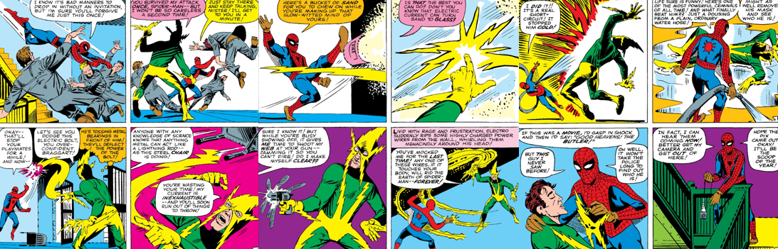 Unburdened by Aunt May’s condition, Spidey uses innovative methods to subdue the powerful Electro.