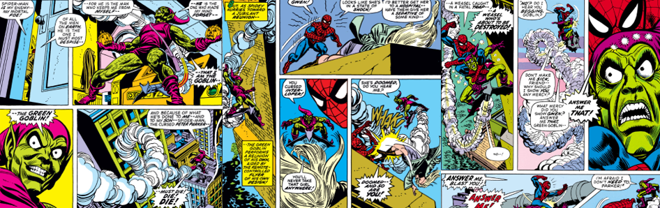 The Background: In 1962, Marvel Comics editor and head writer Stan Lee followed up his success with the Fantastic Four with Spider-Man. The wall-crawler’s debut in Amazing Fantasy #15 proved one of Marvel’s best selling titles and Spider-Man’s popularity led to him getting his own solo title within a year. Very quickly, Spider-Man amassed one of the most colourful and memorable rogues galleries, though Norman Osborn/Green Goblin proved to be one of his most dangerous foes. A central figure in many prominent Spider-Man stories, the Green Goblin cemented his status as Spidey’s archenemy with these two issues, where Osborn contributed to the death of Peter’s long-time love interest, Gwendolyne “Gwen” Stacy. Created by Stan Lee and Steve Ditko and debuting in The Amazing Spider-Man #31, Gwen was the daughter of police captain George Stacy and first met Peter when they were students at Empire State University. Designed to be Peter’s one true love, Gwen and Peter had a rocky relationship, especially after she blamed Spider-Man for her father’s death and Lee was said to be adamantly against killing her off. Writer Gerry Conway and editor Roy Thomas disagreed, however, and wished to do away with the beautiful blonde in favour of the more rambunctious Mary Jane Watson/M.J. Said to have marked the end of the more innocent “Silver Age” of comics, Gwen’s death haunted Spider-Man for decades both literally (thanks to her clones and some abysmal retcons) and figuratively, as seen in his subsequent relationship with M.J. and his guilt over sharing the blame for Gwen’s death. This dramatic moment also came to be adapted into live-action, being echoed in the 1990’s cartoon and Spider-Man(Raimi, 2002), with M.J. (Saratoga Ballantine/Kirsten Dunst) as a substitute, and served as a heart-wrenching finale to The Amazing Spider-Man 2 (Webb, 2014) that Peter (Andrew Garfield) atoned for some ten years later. While alternative versions of Gwen have since gained popularity, “The Night Gwen Stacy Died” remains one of the most pivotal and iconic stories in Spider-Man’s long history.