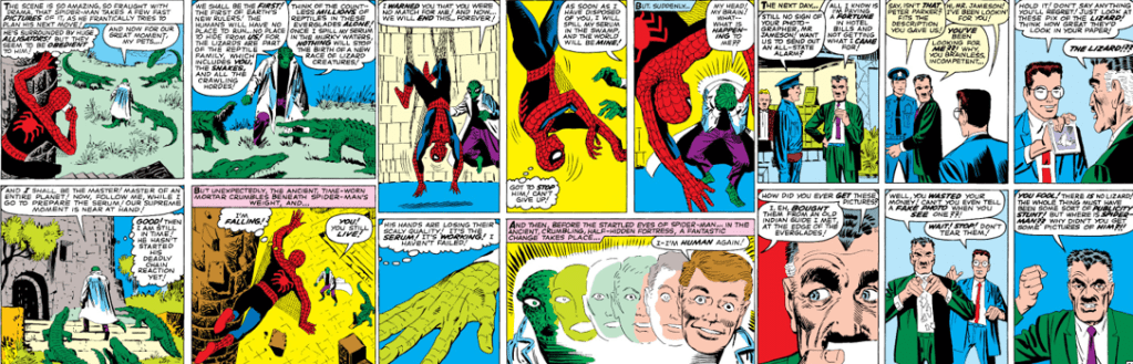 Spidey endures the Lizard’s assault and cures Dr. Connors, but gets screwed by Jonah.
