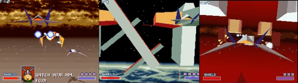 As mentioned, there are three paths to choose in Star Fox 64, though you really need to be paying attention in missions to figure out how to tackle the different levels and challenges. Rescuing Falco or ignoring Star Wolf or prioritising kills will put you on different paths and, while you can change to a lower path, you can’t change up to a higher one. You’ll get slightly different endings for each, with Andross only being properly destroyed on the hardest path, though this encourages replaying the game as much as the high score table. As if that wasn’t enough, if you accumulate enough kills and keep your allies alive, you’ll be awarded a medal. Get a medal on every mission to unlock the harder “Expert” mode and really challenge yourself. There’s also a Versus mode where you compete against friends for points, either working towards a set number of kills or against a time limit, which also allows you to play outside of a vehicle. Beyond that, you can mess about with the title screen, search for warp points, unlock artwork by beating Expert mode, and use the Nintendo Switch Online functionality to create save states.