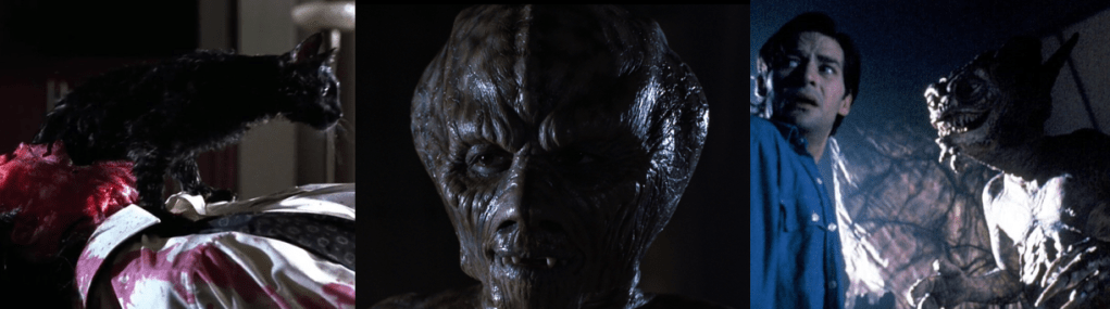 Although I’m a big fan of horror, horror comedies, comedies, and comic books, Creepshow missed the mark for me in many ways. It’s always to be expected that some segments in an anthology film will be stronger than others. Creepshow certainly offers a variety of stories, but the film is just too long and some segments really outstay their welcome rather than telling fun, gory horror tales. I liked that each one had a different flavour, from bickering families faced with a spiteful zombie patriarch to a spurned husband enacting a chilling revenge and a bizarre monster living in a box and ready to eat an abusive wife. The practical effects were an obvious highlight, with the rare instances of gore being quite shocking, the undead appearing very tactile and disturbing, and even the unconvincing Fluffy making an impression since it’s so weird and wild. I enjoyed seeing some famous faces pop up here, especially Ted Danson and Leslie Nielsen, though it might’ve been a mistake to give Stephen King such a prominent role. Jordy is so dim-witted he makes Tom Cullen seem like a genius (M-O-O-N, that spells “genius”!) and I felt the comedic buffoonery of the character really lessened the emotional impact of his transformation and suicide. Similarly, while it helps to build sympathy to see just how put upon Henry is, “The Crate” is crippled by its overly long run time, which is doubly disappointing considering most of the other stories deliver on their premise in an acceptable length of time. I enjoyed seeing the likes of Pratt and Richard get their comeuppance, and how different each story was, but the wraparound segments felt lacking to me as they didn’t capitalise on the unique aspect of the Creepshow comic book. Ultimately, I can’t help but feel a little dissatisfied with Creepshow, which maybe crams too much into its runtime to be as effective as other horror anthologies and definitely has a format that’s more suited to an anthology television show than the big screen.