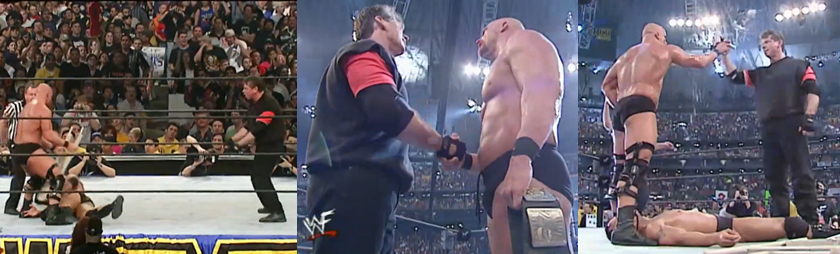 Thanks to a stray chair shot and the Undertaker’s assistance, Austin triumphed over the odds.