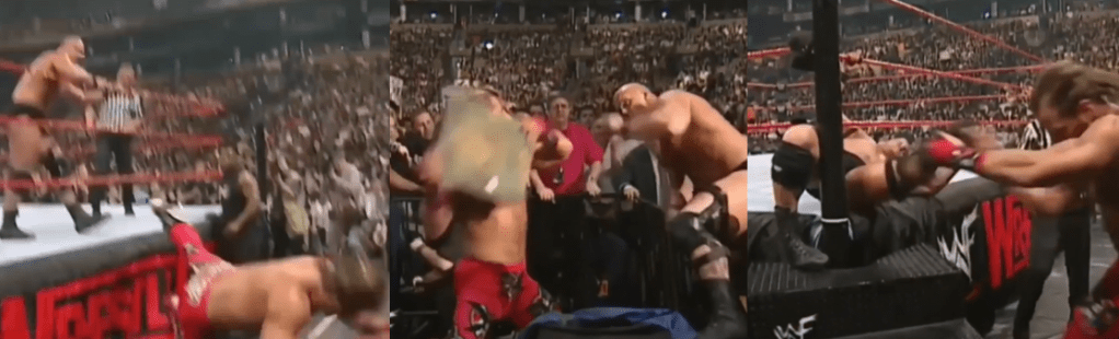 Despite Jericho’s actions, the WWF (and Vince) came out on top thanks to Angle’s last-second assistance.