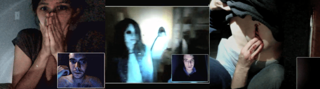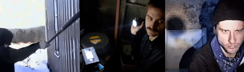 As in the first film, V/H/S/2 features a framing narrative that allows for the film’s short stories to be told; “Tape 49” (Barrett) follows Larry (Levine) and Ayesha (Kelsy Abbott), two unscrupulous private investigators who are hired by a concerned mother to check on her son, Kyle (Holt), who has been missing for a few days. When they arrive at the college kid’s house, they find it to be deserted; stacks of VHS tapes are piled up everywhere and Kyle’s laptop has been left recording a video. Kyle’s video log shows him discussing his obsession with the tapes and, while Larry searches the rest of the house, Ayesha checks out some of the tapes. After each short, the film cuts back to Ayesha, who comes to be physically affected by what she has watched (which, according to Kyle, must be viewed in a certain order to have the greatest effect) and is unaware that she is being stalked. Eventually, Larry comes in the room to find Ayesha has killed herself with a bullet to the head but she returns to attack him as a zombie after he watches the final film. Though he’s able to fight her off, Larry ends up being strangled to death by Kyle, who attempted to kill himself on camera to make his own tape and ended up blowing his entire lower jaw off in the process! Regardless, he delivers a thumbs up, indicating that he succeeded in his goal.