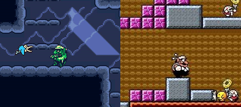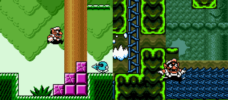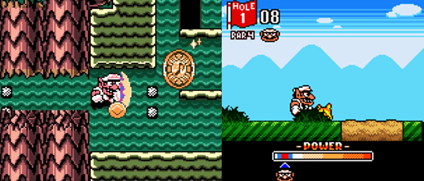 The biggest change to the gameplay is the inclusion of three new characters. You begin controlling Yoshi, who swallows enemies with A, lays an egg with R, and tosses said egg with A (or simply spits the enemy out if you prefer). Yoshi also performs a “flutter” jump by holding B to give him a bit more airtime and temporarily breathes fire with a Power Flower, which is great for melting ice blocks. Luigi is the fastest, slipperiest of the characters; he also has a flutter jump but can spin in the air off a back somersault to cross wider gaps. Luigi can also briefly run across the surface of water and temporarily turn invisible when he grabs the Power Flower, effectively replacing the Vanish Cap from the original game. Wario is the smallest, stoutest, and slowest of the four but also the most powerful. He can break black blocks swing and throw opponents in Vs. Mode, and temporarily turn invincible when grabbing the Power Flower, meaning he replaces the Metal Cap. Mario has all his original abilities, including temporarily flying with the Wing Cap with a feather (which remains as awkward as ever) but he can now inflate like a balloon and float with the Power Flower. Although you must unlock Mario, Luigi, and Wario, you can assume their form and powers by defeating enemies who wear their caps or finding their caps in the Courses, though you’ll lose their abilities when you take damage. You can manually switch characters by visiting the switch room, which is located where the Princess’s Secret Slide was (and still is) but you can only battle Bowser as Mario. The Super Mushroom also makes a return here, briefly enlarging your character and allowing them to plough through enemies and obstacles and earn extra lives. You can also still ride discarded Koopa shells to speed around Courses, and all the character models and game textures have received a nice upgrade, making everything even more colourful and detailed even on the DS’s smaller screen.
