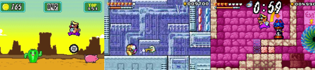Designed by Hiroji Kiyotake to symbolise Nintendo R&D1’s displeasure at being denied the chance to create original videogames, Mario’s dastardly doppelgänger first appeared in Super Mario Land 2: 6 Golden Coins (ibid, 1992). Wario then usurped Nintendo’s portly plumber as the face of Mario’s handheld sub-series, leading to three highly regarded portable adventures. Wario Land 4 restricted Wario to an ancient pyramid and incorporated “Metroidvania”-like exploration alongside more traditional platforming mechanics compared to its previous two games. A strong seller, Wario Land 4 was met with widespread acclaim as reviews praised the replay value, colourful and lively graphics, and balanced challenge, though the lack of true innovation was noted.