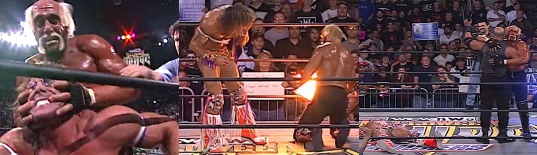 The Build-Up: World Championship Wrestling (WCW) changed the wrestling industry on 4 September 1995 by airing the first episode of WCW Monday Nitro in direct competition to the World Wrestling Federation’s (WWF) Raw is War, kicking off the “Monday Night Wars” that saw WCW dominate for a staggering eighty-four weeks. WCW accomplished this by signing some of wrestling’s biggest names to lucrative contracts. with perhaps their biggest coup being signing the undisputed face of the WWF, “The Immortal” Hulk Hogan, after being wooed by promises of big paydays and future film roles. While his initial run saw Hogan going though the motions of his usual hero shtick, he reinvigorated his career when he turned heel, rechristened himself “Hollywood” Hogan, and ran roughshod throughout WCW alongside the New World Order (nWo). Despite being relieved of the WCW World Heavyweight Championship in controversialfashion, Hogan and the nWo continued to dominate Nitro, leading to his old rival, the Ultimate warrior, to sign with WCW after numerousdisagreements with the WWF. The Warrior’s arrival had been previously teased with a lookalike, the Renegade, but the real deal finally debuted in WCW in May 1998, going on a half-crazed rant, forming the “One Warrior Nation” (oWn), and critically injuring Davey Boy Smith with a gimmicked trapdoor. The Warrior would haunt Hogan with ridiculous mind games and tricks, which resulted in a dangerous fireball botch in this match, which is generally considered to be one of the worst matches in WCW history and incomparable to their WrestleMania VI classic.